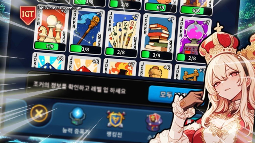 The heart of A.C.E shuffles with mechanics—a roguelike games feast of deck-building strategy that’s pure tavern magic. You battle through stages, defeating card soldiers to earn coins, which you spend on “various essential items to maximize the deck power,” per Google Play. Think Balatro—build your deck with jokers, items, and scrolls, aiming for “burst damage” to crush foes. Each stage ends with an “Overkill” boss, a thrilling test of your deck’s might. “Focus and Select!” the game urges—every choice shapes your run, with “various strategy options” ensuring no two playthroughs feel the same.