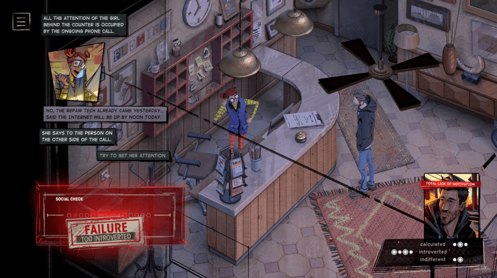 You’re not a blank slate in this game—you craft your personality, determining whether your avatar is introverted, anxious, brash, or something else entirely. As events unfold, your personality “graph” stores memories, unlocks intentions, and shifts your mindset. Status effects like “sensitive” or “outgoing when drunk” can change what dialogue options are available.