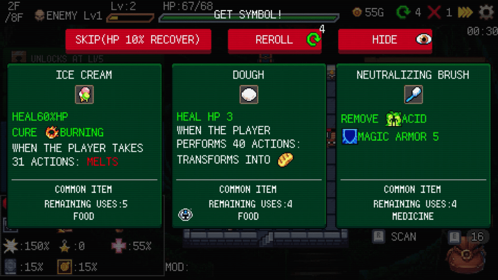 2. Slot-machine mechanics influencing dungeon layout – As you progress, you collect “symbols” which are used in slots. The result of the slots determines what kind of symbols appear on the next floor (enemies, items, spells). This means each floor’s layout is dynamically shaped by your slot draws and your symbol configuration.