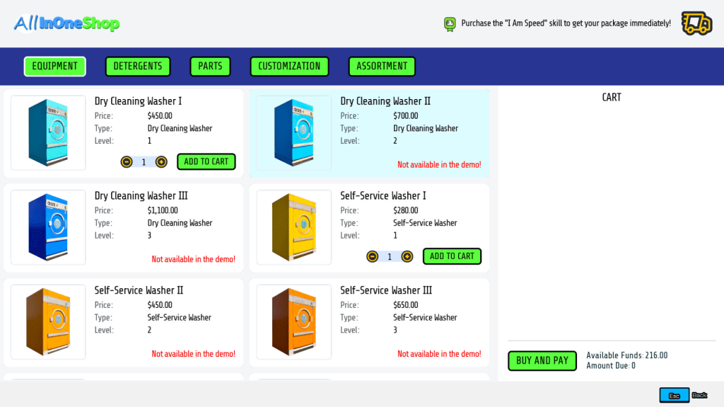 The upgrade path (better machines, faster throughput, more currencies) promises depth beyond the base task. The idea that you can improve your workflow adds motivation—rather than simply repeating “wash → ship” forever.