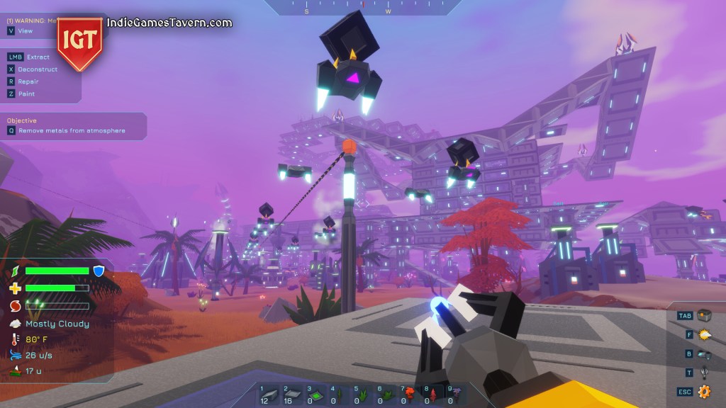 Skyformer positions you as a robot sent to an alien planet with one goal: terraform it to habitability for your creators. But it’s not just about building—they purposely weave in weather, automation, factory logistics, and survival. Key systems of this indie automation game are: